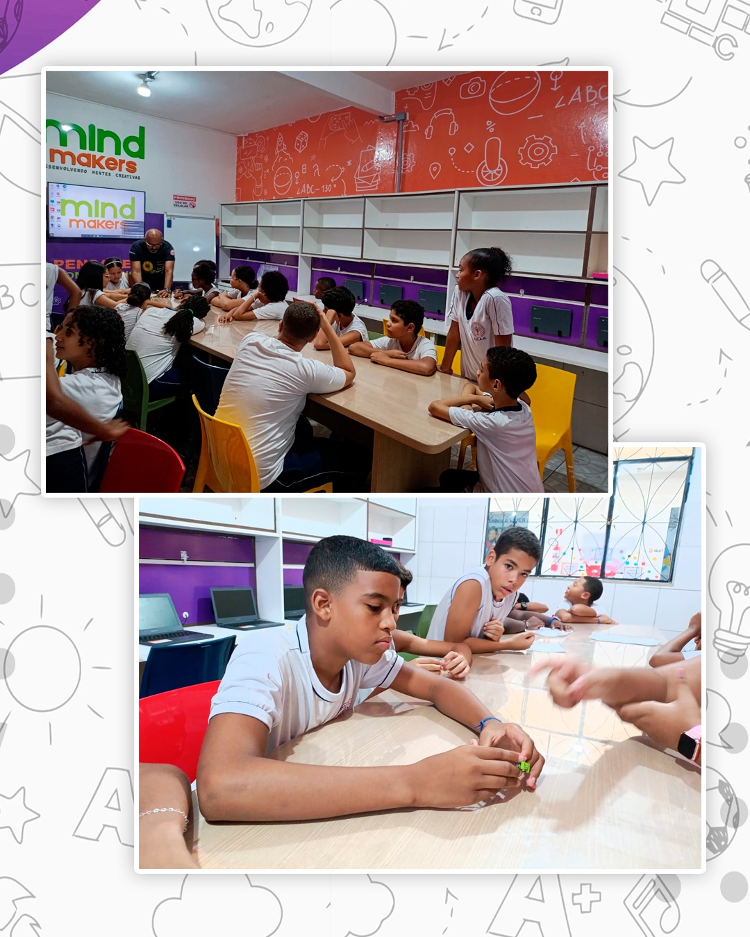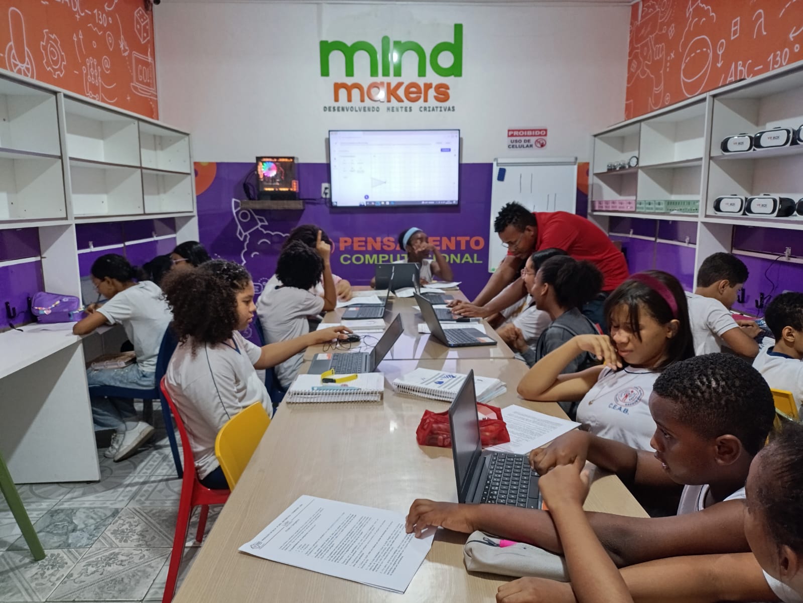A Sala Mind Makers do Colégio Estadual Alzemira Borges (CEAB) é um espaço inovador dedicado ao desenvolvimento de habilidades essenciais para o século XXI. Com o objetivo de estimular a criatividade, o pensamento crítico e a resolução de problemas, a Sala Mind Makers transforma o ambiente escolar em um verdadeiro laboratório de ideias e experimentação.