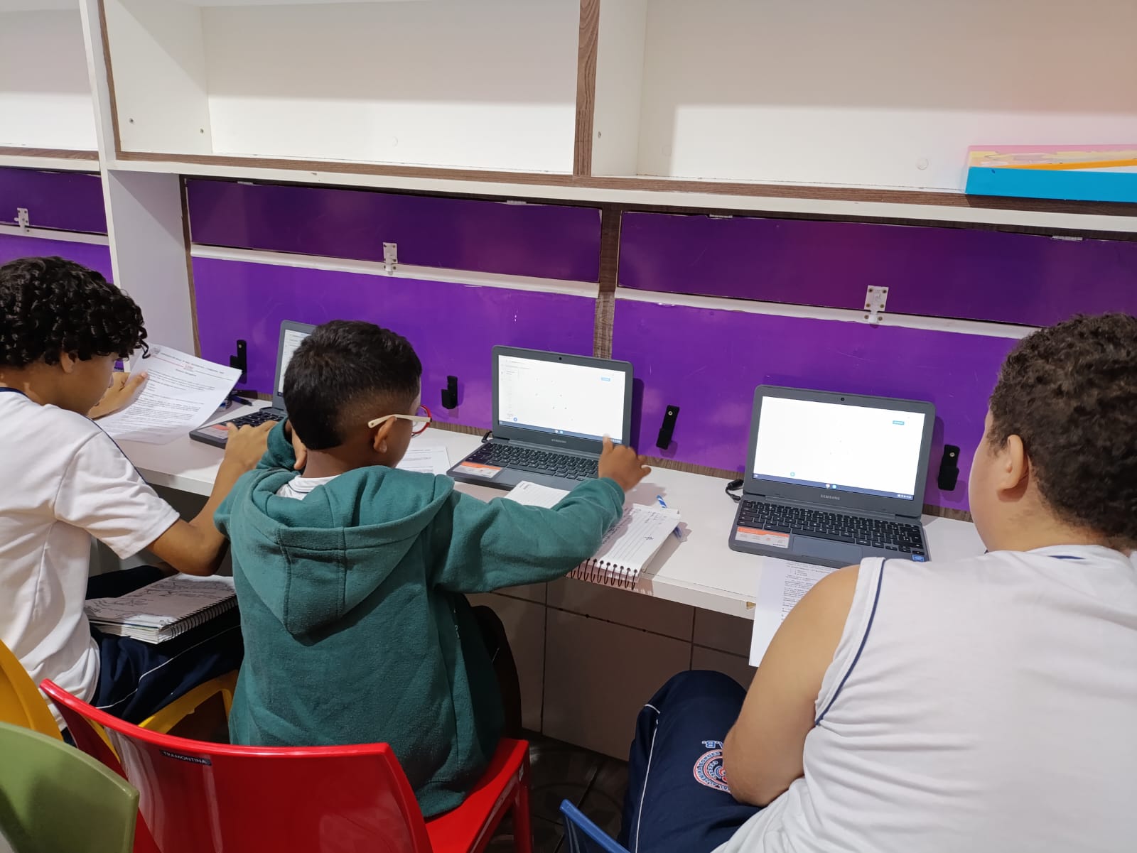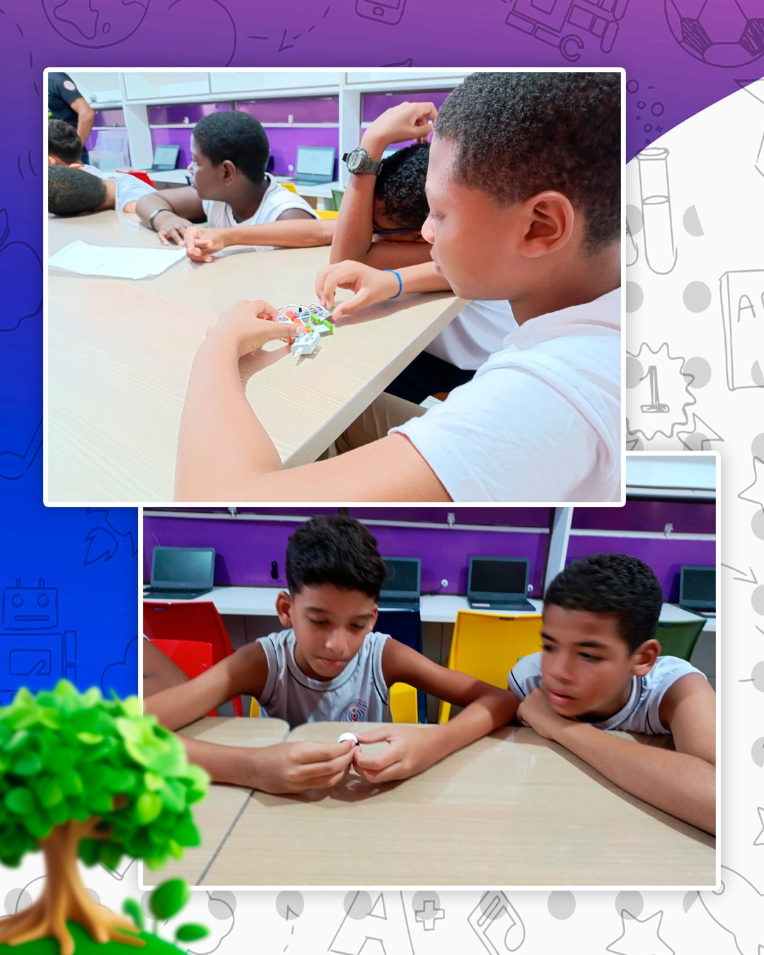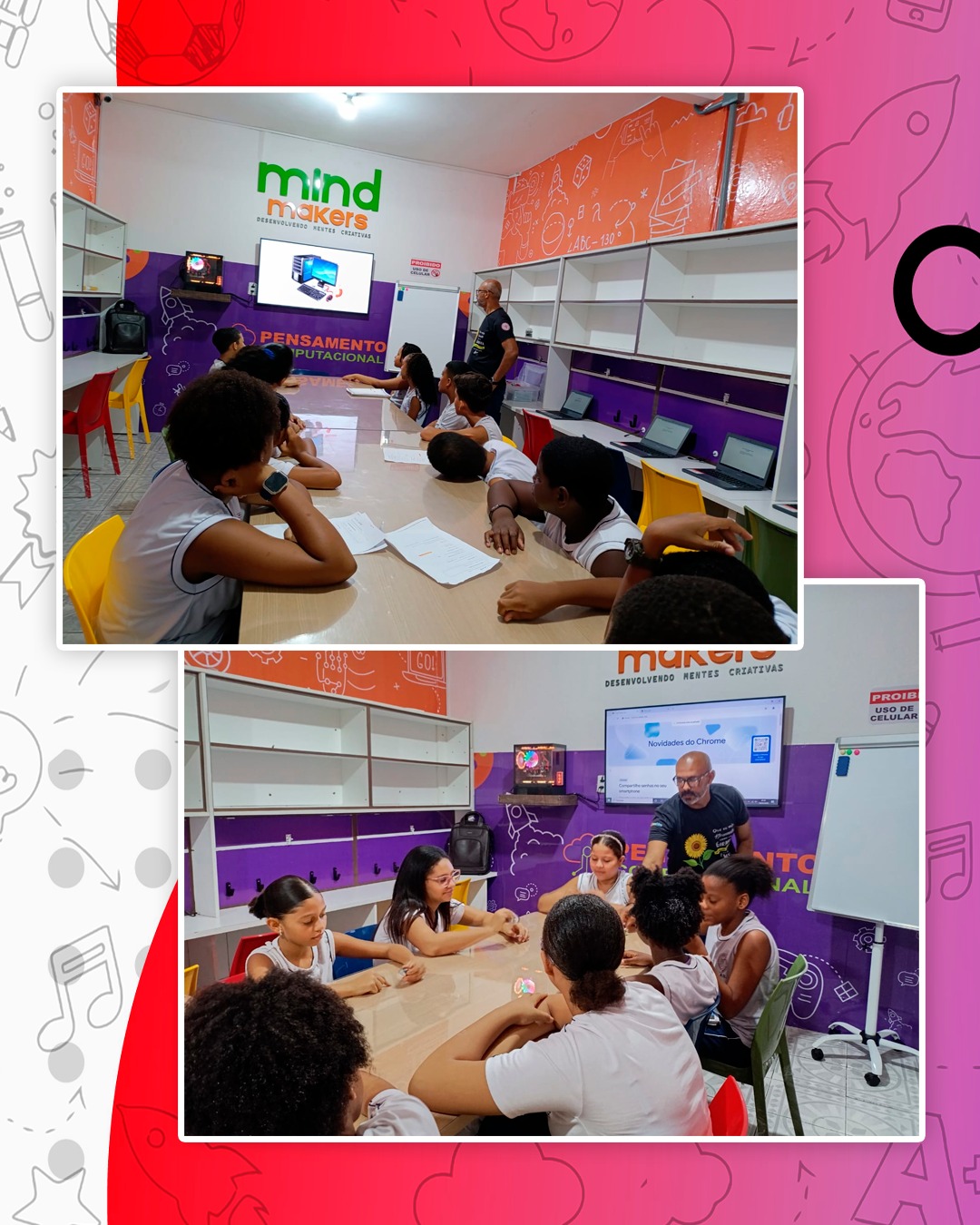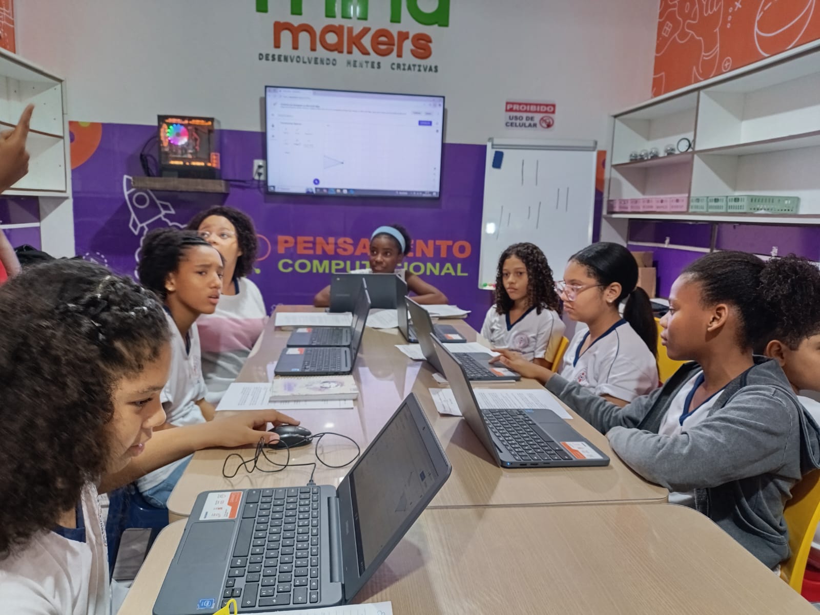 Nesse espaço, os alunos têm a oportunidade de explorar novas tecnologias, trabalhar com robótica, programação e outras ferramentas que os conectam com o futuro do mercado de trabalho e da sociedade digital. A sala é equipada com recursos modernos, como computadores, kits de robótica, impressoras 3D e materiais interativos, que permitem aos estudantes colocar a teoria em prática e desenvolver projetos inovadores.